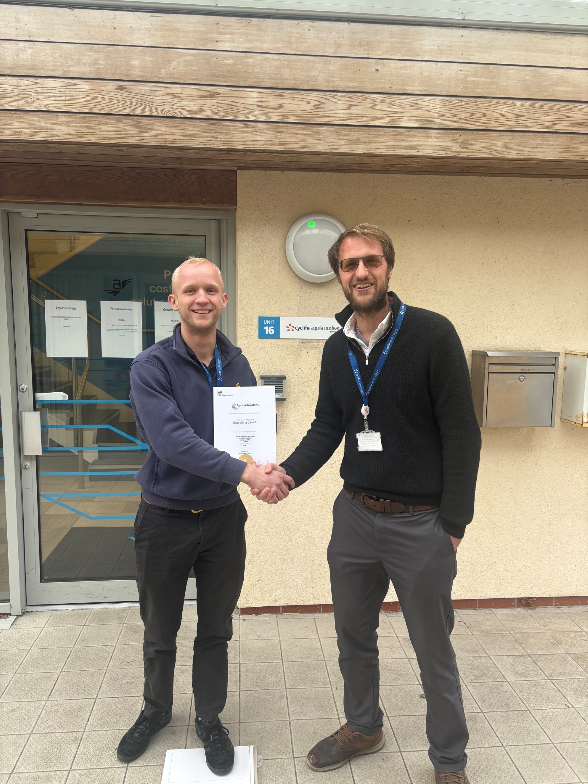Congratulations to Reece Storey-Apicella for completing his apprenticeship and becoming an Assistant Mechanical Design Engineer. Reece says, “My apprenticeship has been an exciting and rewarding journey, offering many opportunities to learn and build my skills. I’m grateful for the support from Cyclife Aquila Nuclear and my colleagues throughout, including the qualifications, growing responsibilities and guidance from respected mentors. Completing this apprenticeship has given me a strong foundation to build upon as I continue to develop a rewarding career in engineering”.